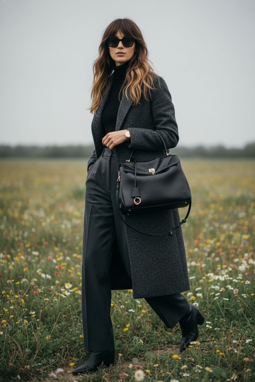 Whether in classic black or a bold tone, it stands out for its smart compartments and refined leather finish.